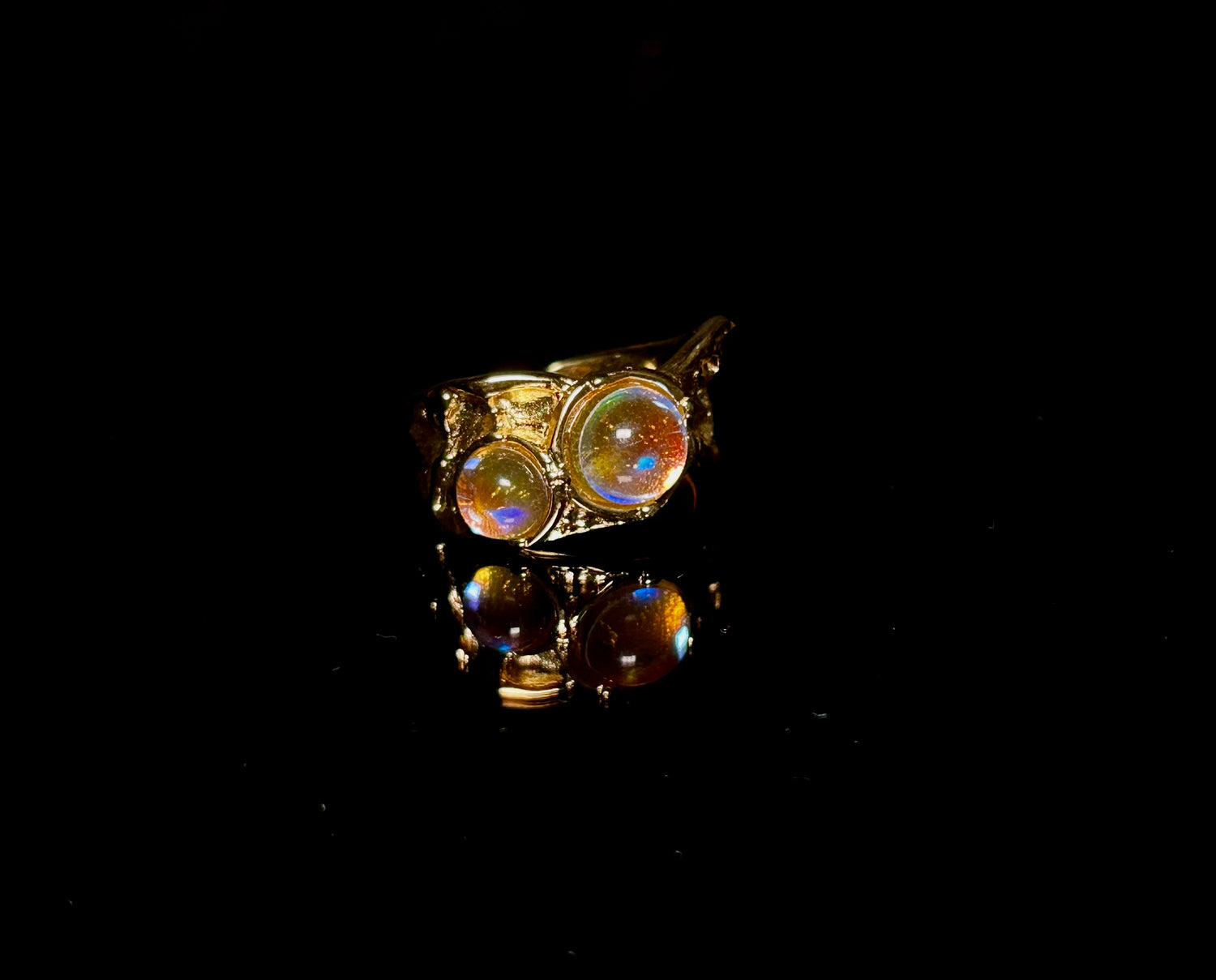 "Portales Ring" es un anillo que evoca la grandeza de Etherna, un reino donde los límites entre los mundos se entrelazan. Hecho de acero inoxidable y bañado en oro, su tamaño imponente refleja la magnificencia de las puertas místicas que se dice que pueblan Etherna. Cada una de las dos piedras translúcidas engastadas en su armazón es un homenaje a estos portales, brillando con una luz etérea que invita a la reflexión y al descubrimiento. Llevar este anillo es llevar la llave a mundos desconocidos, cada piedra un umbral a una nueva experiencia, un paso más hacia los secretos que solo Etherna puede revelar.